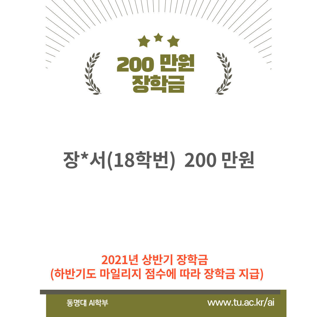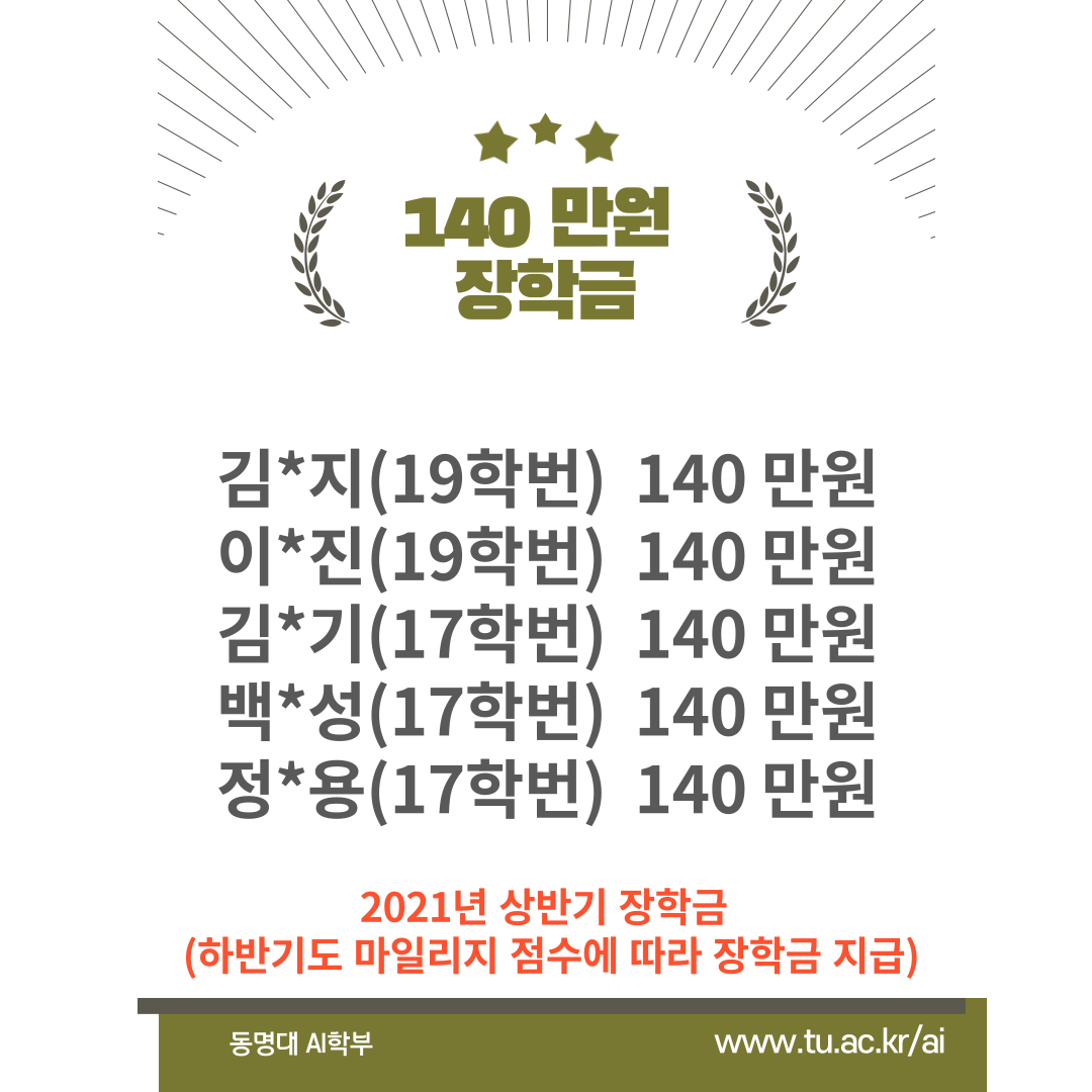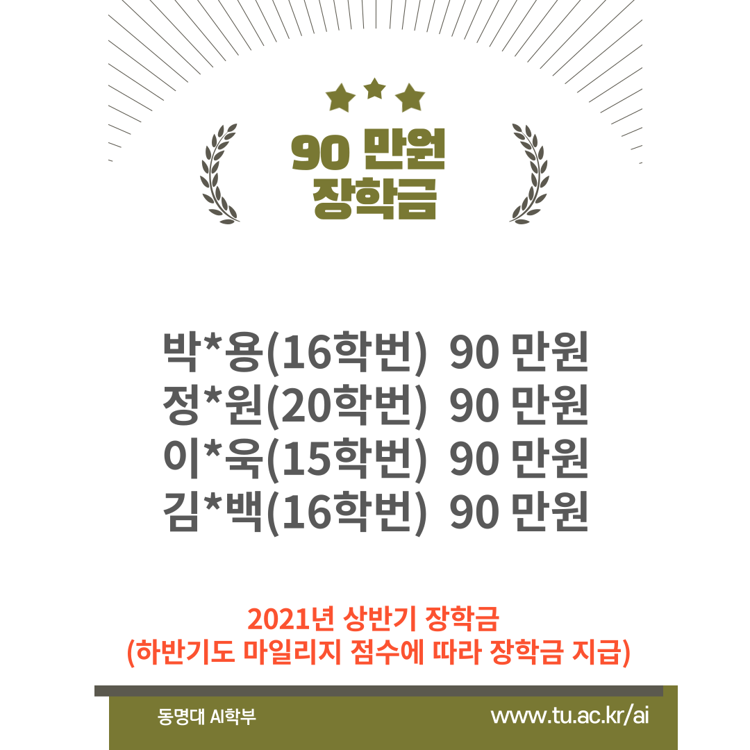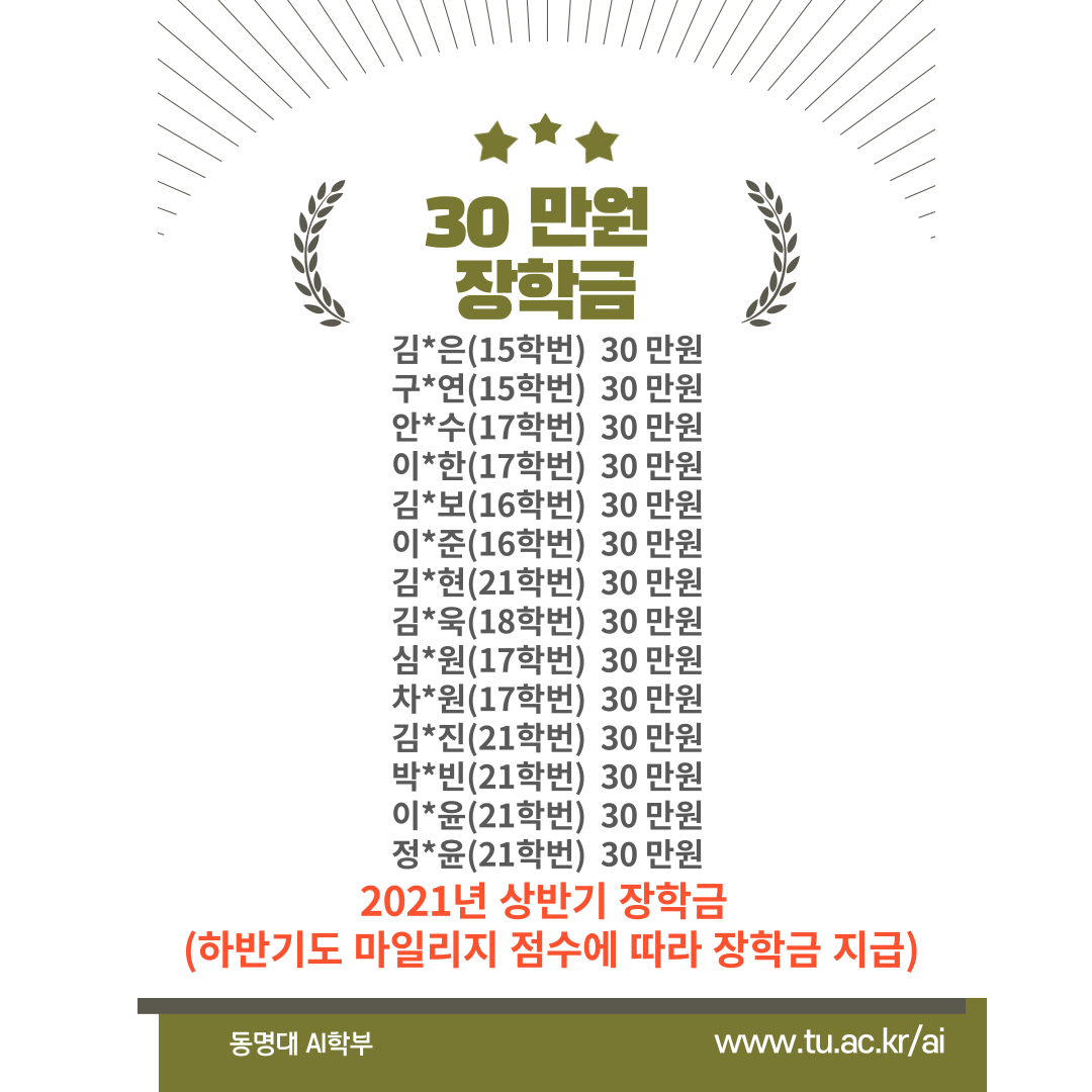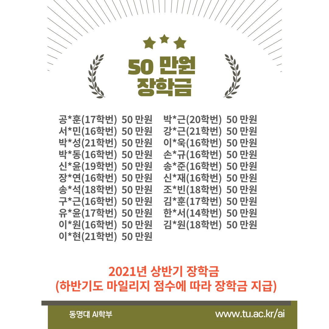 장학생 지급 명단입니다. 2021년 7월 말에 지급 완료되었습니다 ^^
