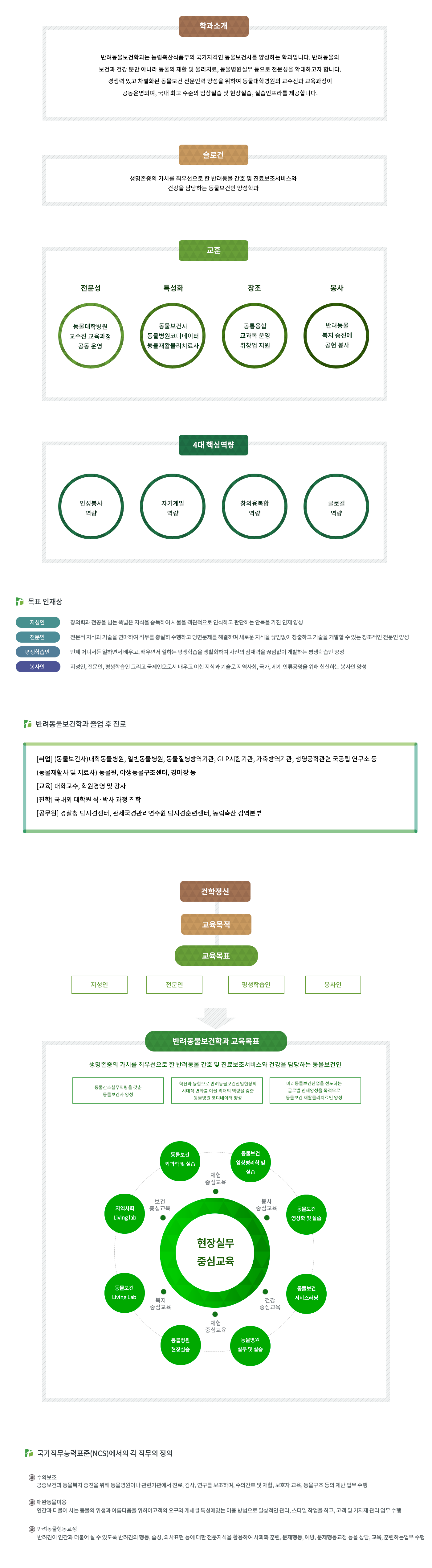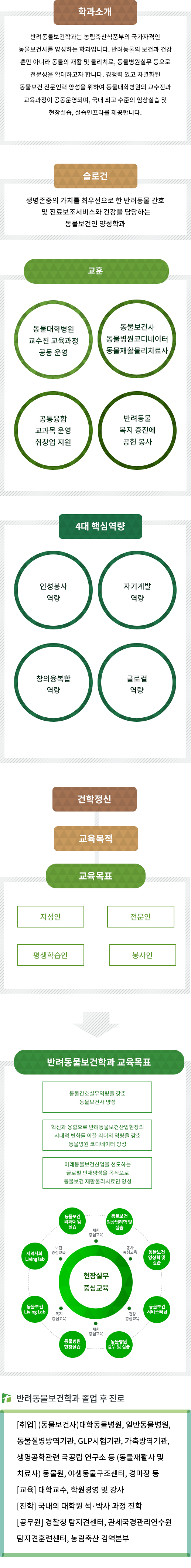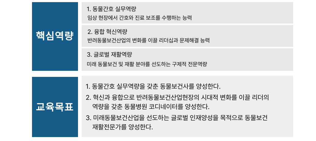생명존중의 가치를 최우선으로 한 반려동물 간호 및 진료보조서비스와 건강을 담당하는 동물보건인 양성