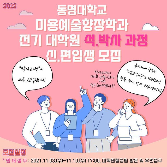 2022학년도 미용예술향장학과 전기 대학원 석·박사과정 신·편입생 모집