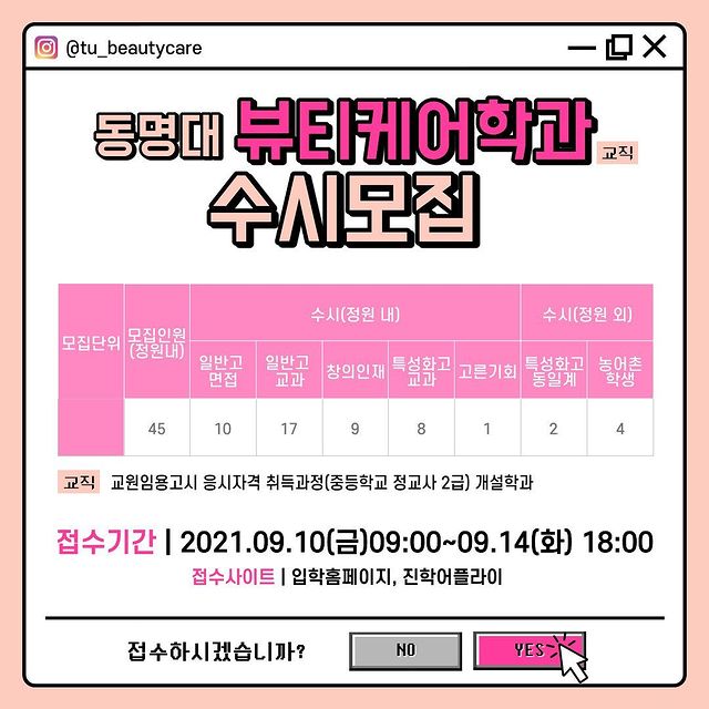 동명대 뷰티케어학과가 궁금한 입시생들!!