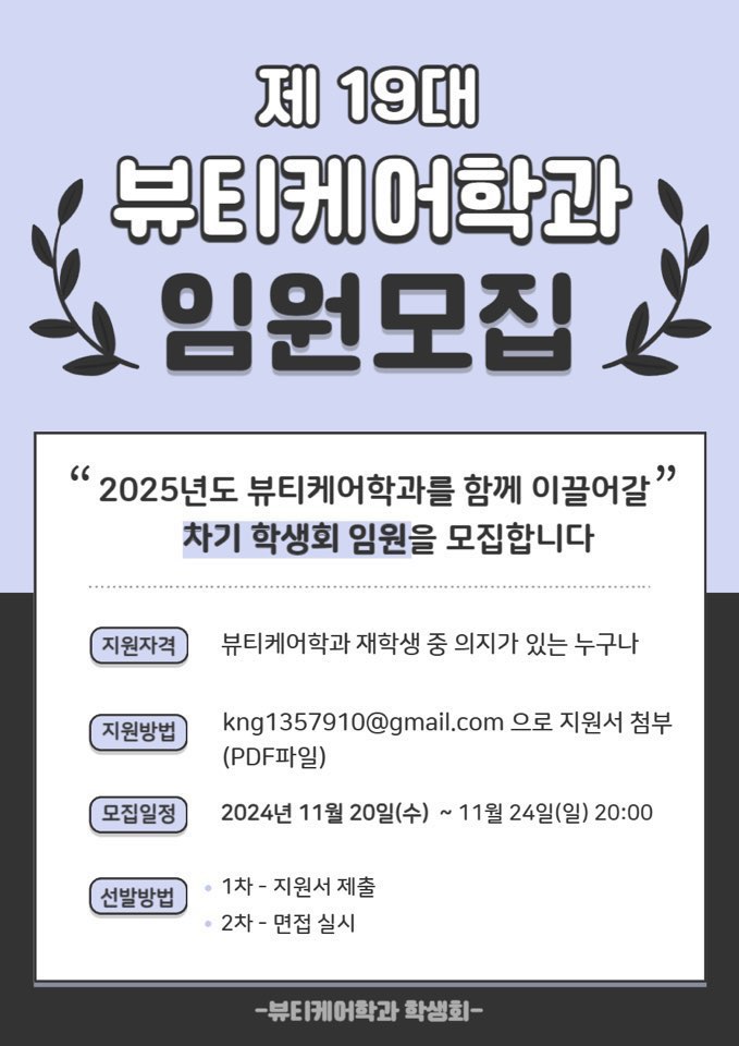 안녕하세요. 기말고사 시즌을 앞두고 뷰티케어학과에서는 2025년도 차기 총대 및 학생회 임원 선발이 이루어졌습니다.