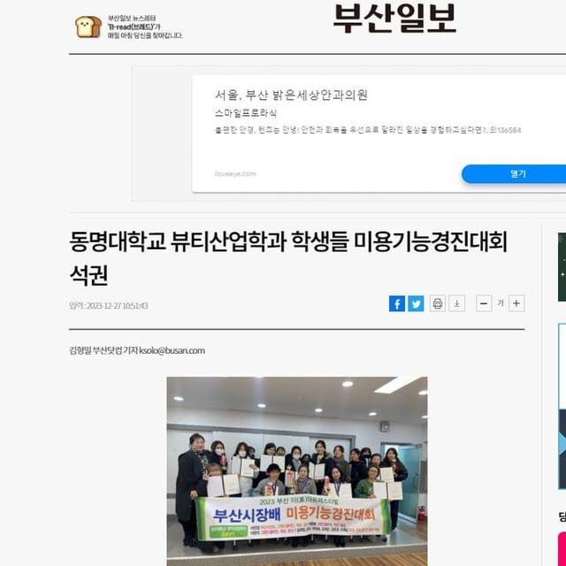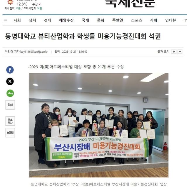부산일보에 동명대학교 뷰티산업학과 입상내역이 기사에~~@!!!@!