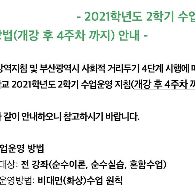 📌2021학년도 2학기 수업운영 방법(개강 후 4주차 까지) 안내📌