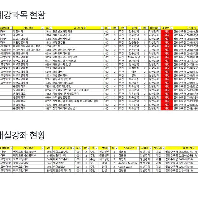 2021학년도 하계 계절학기 개설과목 현황
