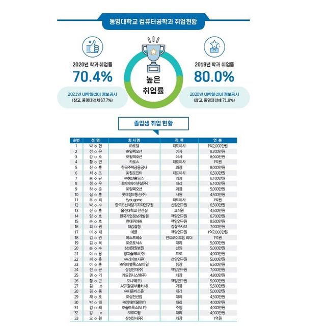 동명대 컴퓨터공학부 2019~2020년도 취업현황