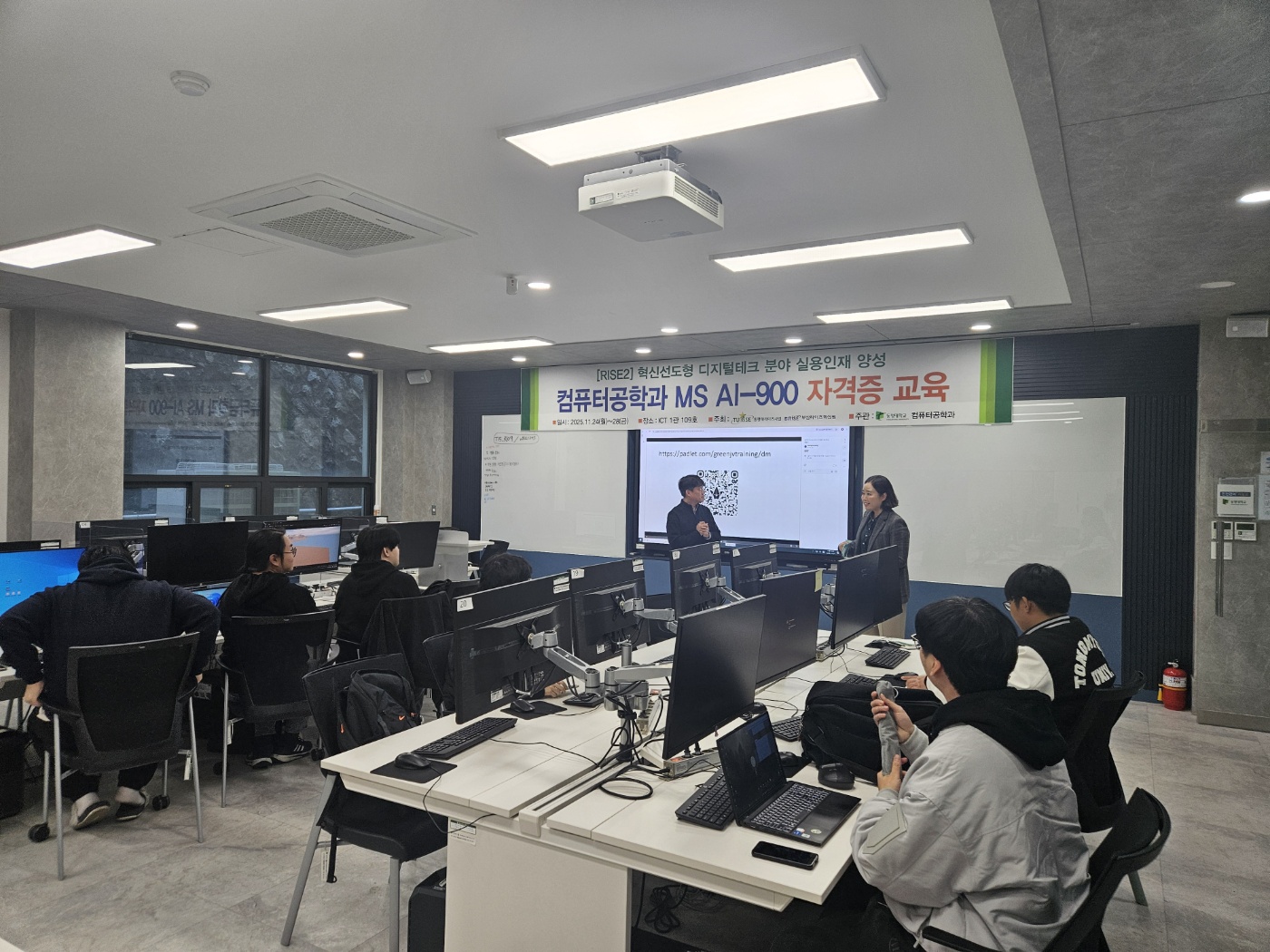 컴퓨터공학과는 2025년 11월 24일(월)부터 28일(금)까지 5일간, 총 10시간에 걸쳐 MS AI-900(인공지능 기초) 자격증반을 운영하였습니다. 이번 과정은 4차 산업혁명 시대의 핵심 기술인 인공지능(AI), 빅데이터, 클라우드의 기본 개념을 이해하고, 실제 산업 현장에서의 활용을 살펴보며 AI-900 자격증 취득을 준비하는 것을 목표로 하였습니다.