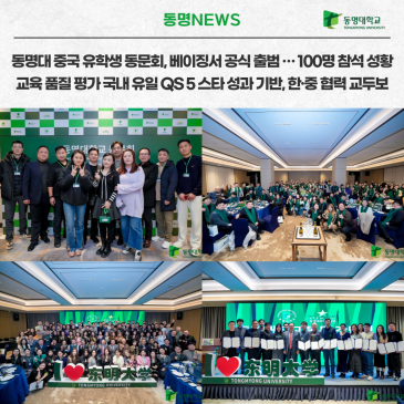 동명대 중국 유학생 동문회가 중국 베이징에서 공식 출범하며 성황리에 개최됐다. 이번 출범은 동명대의 글로벌 교육 성과와 지역혁신 전략이 중국 현지 동문 네트워크로 확장되는 상징적 계기가 됐다는 평가다. 동명대는 중국 유학생 동문회 출범식을 지난 12월 20일 중국 베이징(Empark Grand Hotel)에서 개최하고, 중국 전역에 흩어져 있는 동문 네트워크의 공식 출범을 알렸다. 이상천 동명대 총장을 비롯해 강경수 이사장, 이응주 부총장, 안요한 국제교류처장, 이영숙 뷰티예술대학 학장, 임채관 경영대학 교수, 왕동 건축디자인대학 교수, 추강 건축디자인대학 교수 등 대학 주요 보직자와 교수진이 참석했다. 동명대 대학원 박사 졸업생.......