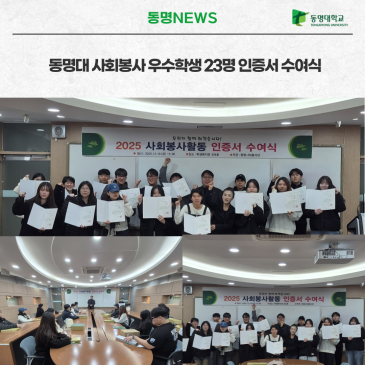동명대 사회봉사 우수학생 23명 인증서 수여식