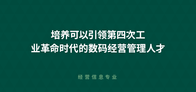 经营信息专业是主导第四次工业革命时代的创意型、革新型的专业。在经营互联网、社交网络、大数据、智能型决策支援和ICT融复合、电子交易商务模式、智能技术等技术革新时代的企业经营环境下,基于经营学的基本原理和技法,嫁接未来信息技术知识,培养创意性,并能迅速做出决策的能力。