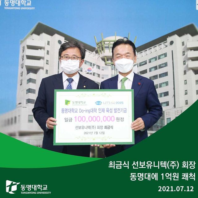 최금식 선보유니텍(주) 회장, 동명대에 1억원 쾌척