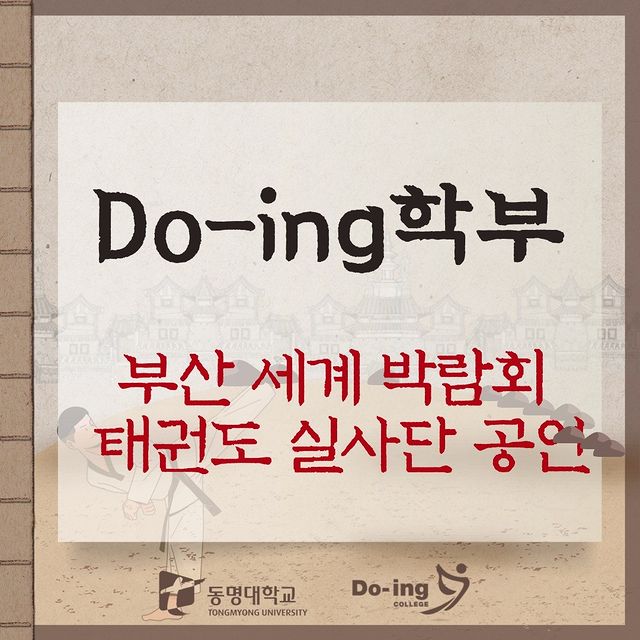 동명대 Do_ing대학 재학생 20명은 이 대학 원형진 교수 지도로, 앞서 지난 3월 25일 서울 광화문광장에서의 ‘2023 국기(國技) 태권도 한마음대축제’에서 태