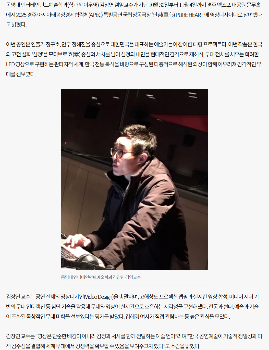 동명대 엔터테인먼트예술학과 김장연 겸임교수, 첨단 무대영상기술 K-Culture 예술 수준 드높여