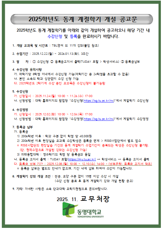 (붙임 2) 2025학년도 동계 계절학기 개설 교과목 내역.xlsx