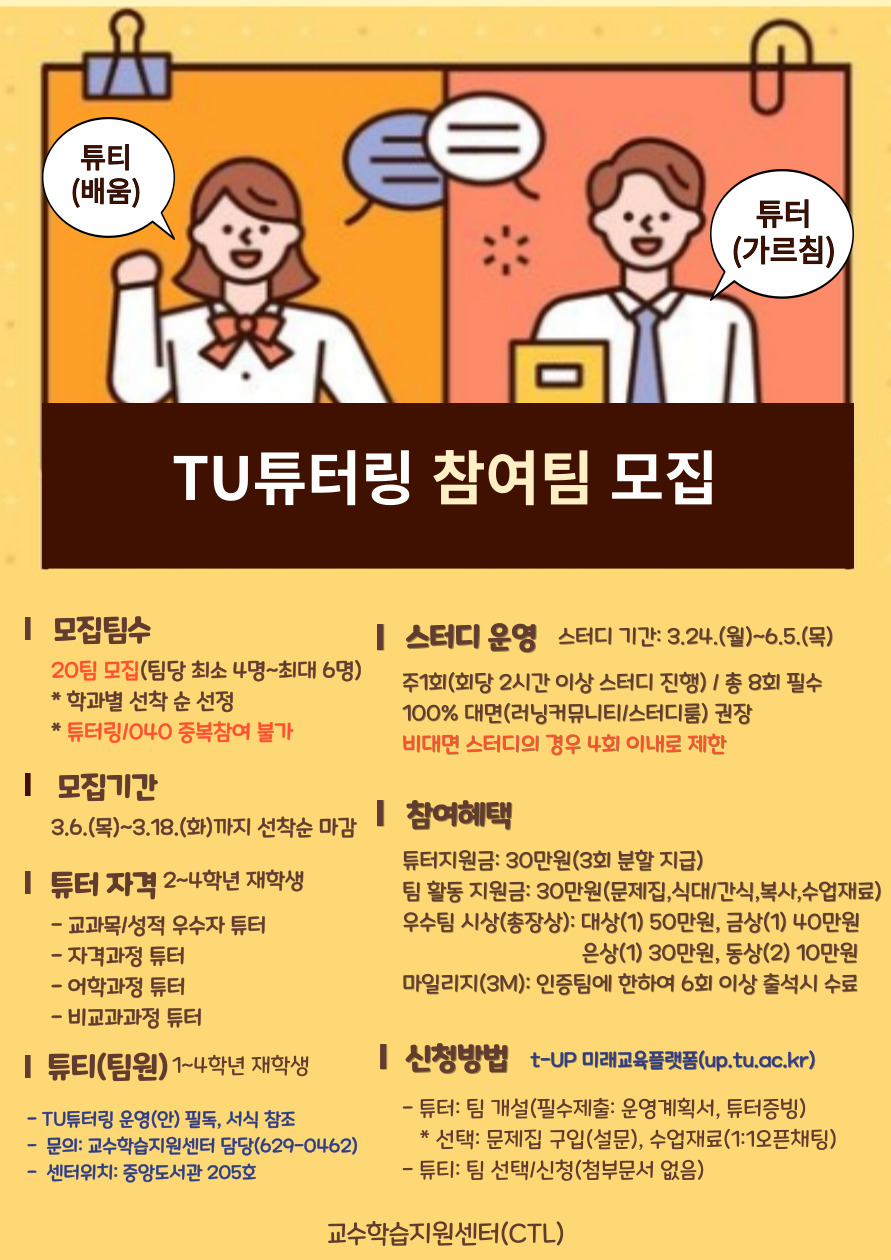 [CTL]2025-1 제37회 TU튜터링 참여팀 모집 안내
