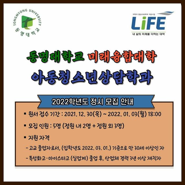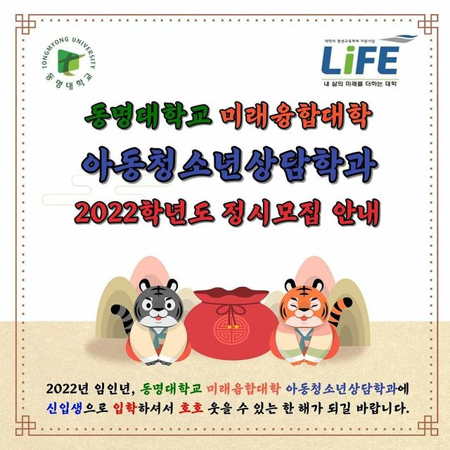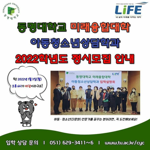 <동명대학교 미래융합대학 아동청소년상담학과 2022학년도 정시모집 안내>