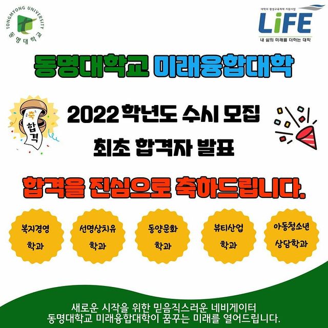 <동명대학교 미래융합대학 2022학년도 수시모집 합격자 발표>