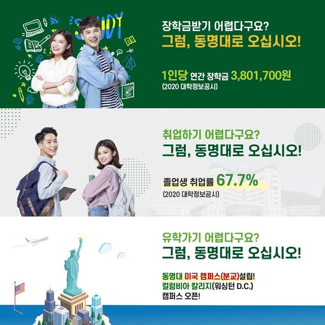 장학금도 취업도 유학도 가능한 동명대학교로 오십시오!