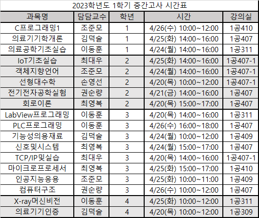 2023-1 중간고사 시험 일정표 안내드립니다.