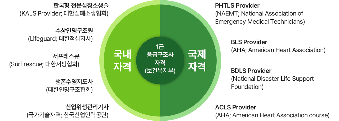 NAEMTNational Association of Emergency Medical Technicians 과정으로 병원 전 처치 제공자에게 외상 환자를 효과적으로 처치하는 데 필요한 지식과 술기를 제공함으로써, 외상 환자의 예후를 향상시키기 위해 고안된 교육 프로그램입니다.