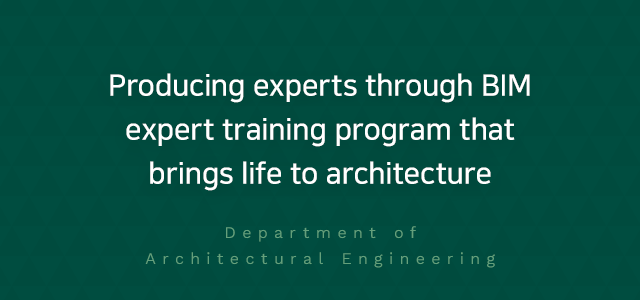 The Department of Architectural Engineering trains engineers who have knowledge and practical skills in detailed majors such as architectural structure, construction and materials, architectural environment and facilities, and construction management. The 2014 Local University Specialization Project was selected to train professionals with BIM expertise through Building Information Modeling (BIM) specialist training programs.As a result, the department has the largest building engineering lab in Busan and Gyeongsangnam-do, and the only BIM center in Busan and Gyeongsangnam-do. It operates an independent structural analysis laboratory, structural materials laboratory, architectural environmental equipment laboratory, and architectural information management laboratory.
