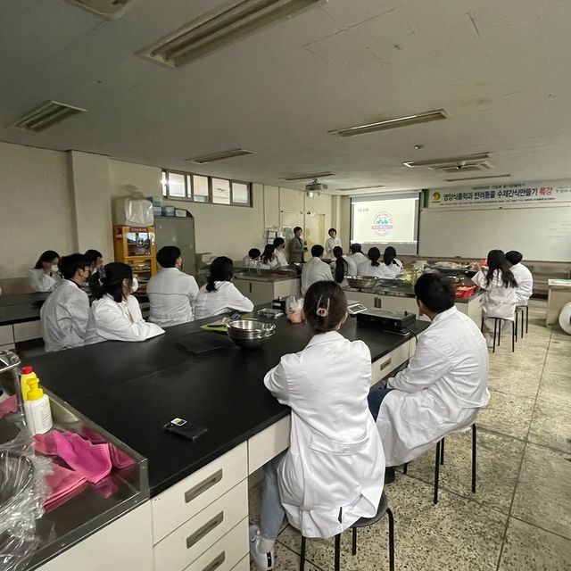 곧 다가올 영양사 현장실습을 위한 연제구어린이급식관리지원센터 팀장님께서 식품영양학과 4학년들을 위해 설명을 해주셨습니다😀
