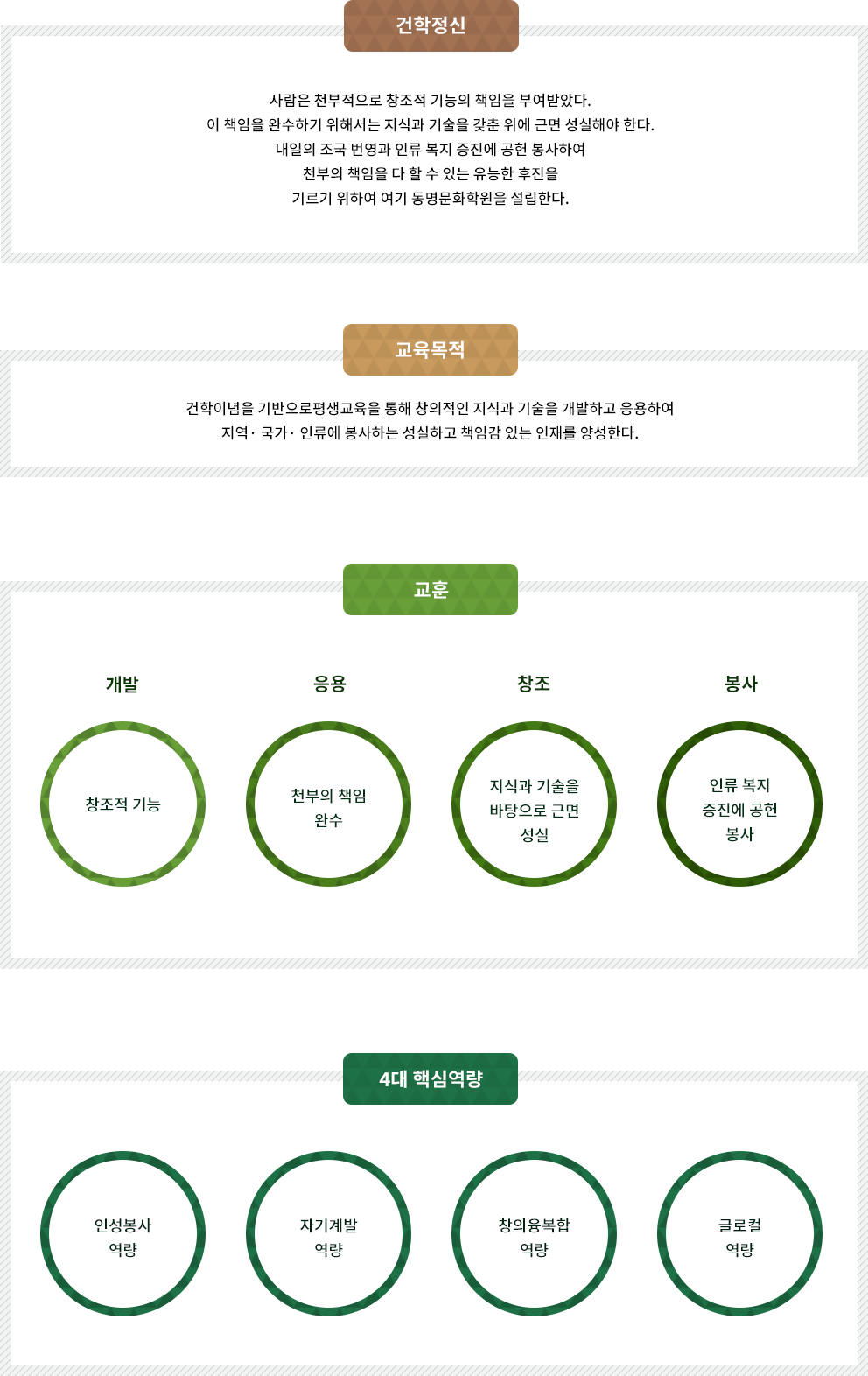 이를 위하여 봉사, 참여, 공동체 의식을 갖춘 교양인으로서 인간을 사랑하는 마음을 바탕으로