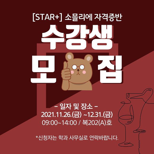 ⭐09/16(목)⭐까지 관심있는 학생들은 학과사무실로 신청바랍니다.