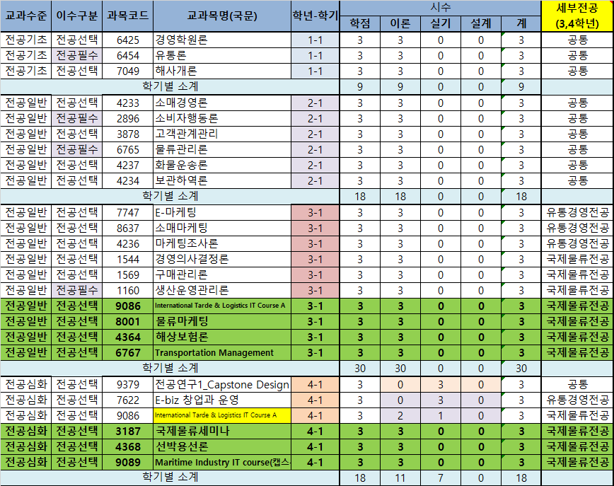 4학년은 국제물류전공으로 들으시되 유통경영 수업도 수강가능합니다.
