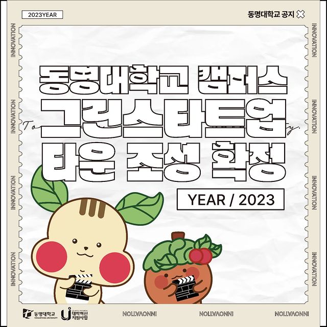 우리대학 대학혁신지원사업을 홍보해줄 TU-이노베이터 5기생을 모집합니다! 1차서류마감일: 2024.3.15.(금) ~ 3.22.(금) 17:00 마감 2차 면접: 2024.03.26.(화) 308호 대기, 307호 면접 (추후 면접 시간 알림은 개인연락으로 공지_면접 진행 수업인증서 필요시 우선알림요망) 합격공지: 2024.03.28.(목) * 서류마감은 2024.3.22(금) 오후 5:00까지 입니다. * 면접 시간 및 장소는 관련 안내 페이지를 참고해주세요. * 장학금은 한달 40시간측정 (400,000원)으로 지급됩니다. 해당 장학금을 받고 있는 학생은 지원불가합니다. (중복 교내서포터즈및 홍보단, 교내근로 지원불가) 지원서 작성 후 이메일 제출 [TU-이노베이터 5기 모집공고] 참조 제출시 파일명은 “TU-이노베이터 5기 지원_본인이름 학번”으로 저장 (제출파일명이 지켜지지 않을시 심사에서 누락될 수 있습니다) 지원서는 hwp(한글) 양식이며, 그 외 추가적인 파일(포트폴리오 등)은 PDF 로 대체 바랍니다. 제출 1. 이메일 : sungkyou@tu.ac.kr 2. 직접제출 : 동명대학교 대학본부경영관(1호관) 209호 재정혁신팀 이노베이터 담당자 (중 택 1) 대학혁신지원사업 총괄책임자