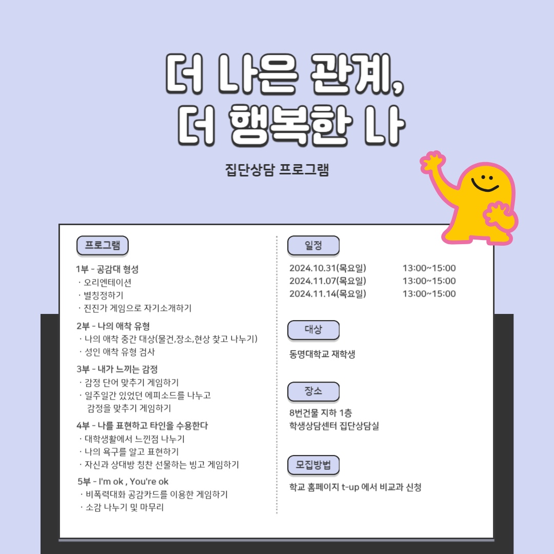 [학생상담센터]2024학년도 2학기 집단상담 프로그램 모집 안내