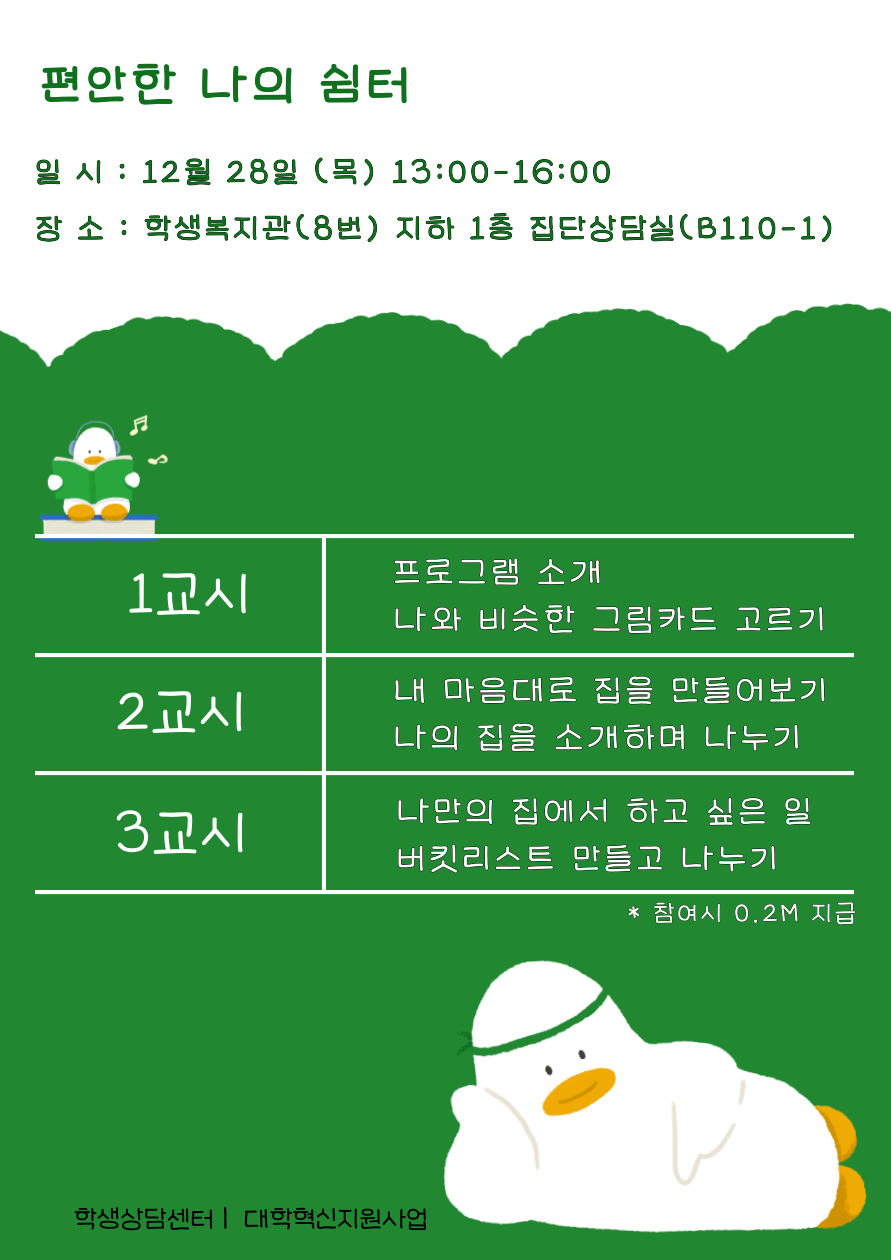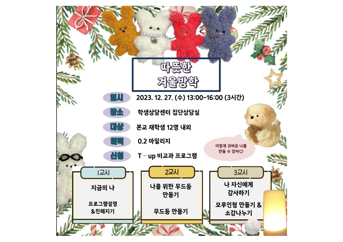 [학생상담센터]2023학년도 2학기 겨울방학 힐링 프로그램 "슬기로운 겨울방학"모집 안내