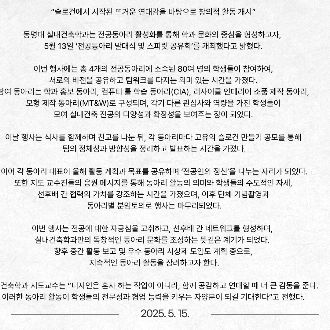 실내건축학과 전공동아리 행사 성료! [ 2025 단대혁신사업 ]