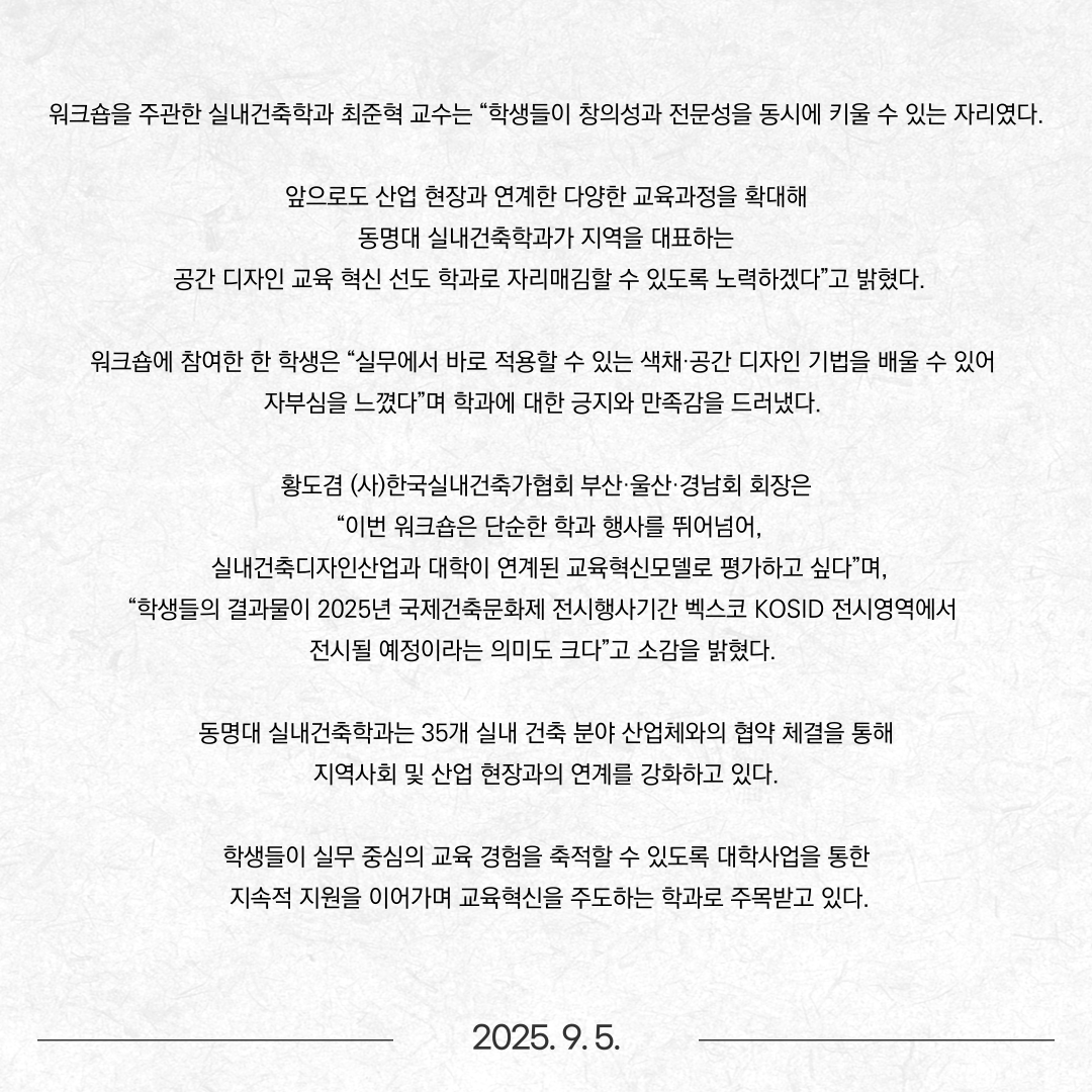 동명대학교 실내건축학과 대학혁신사업의 일환으로 성공적인 산학협력 워크숍 성료!!!