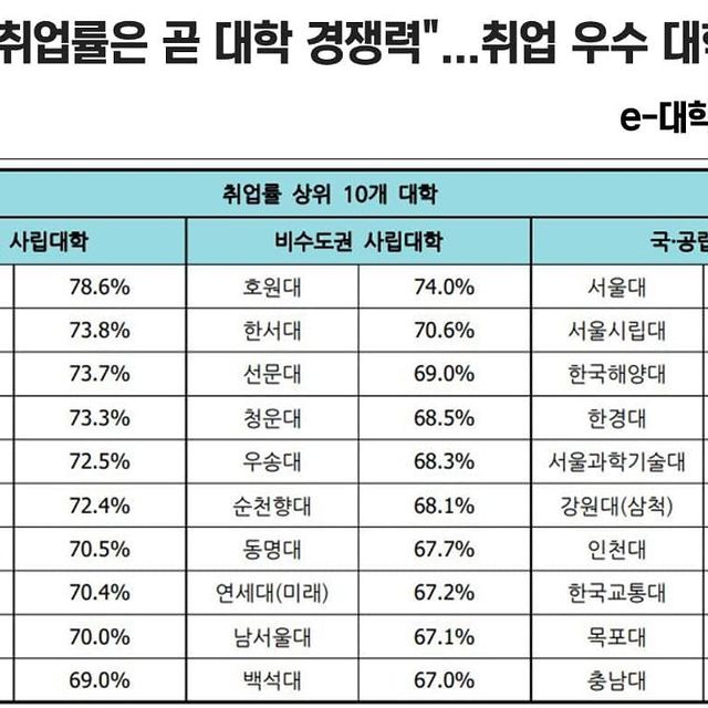 동명대학교 비수도권 사립대학 취업률 전국 7위!!! 부울경 1위!!!