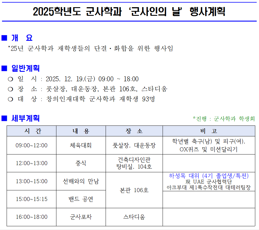 군사인의 날 행사 알림('25.12.19,금)