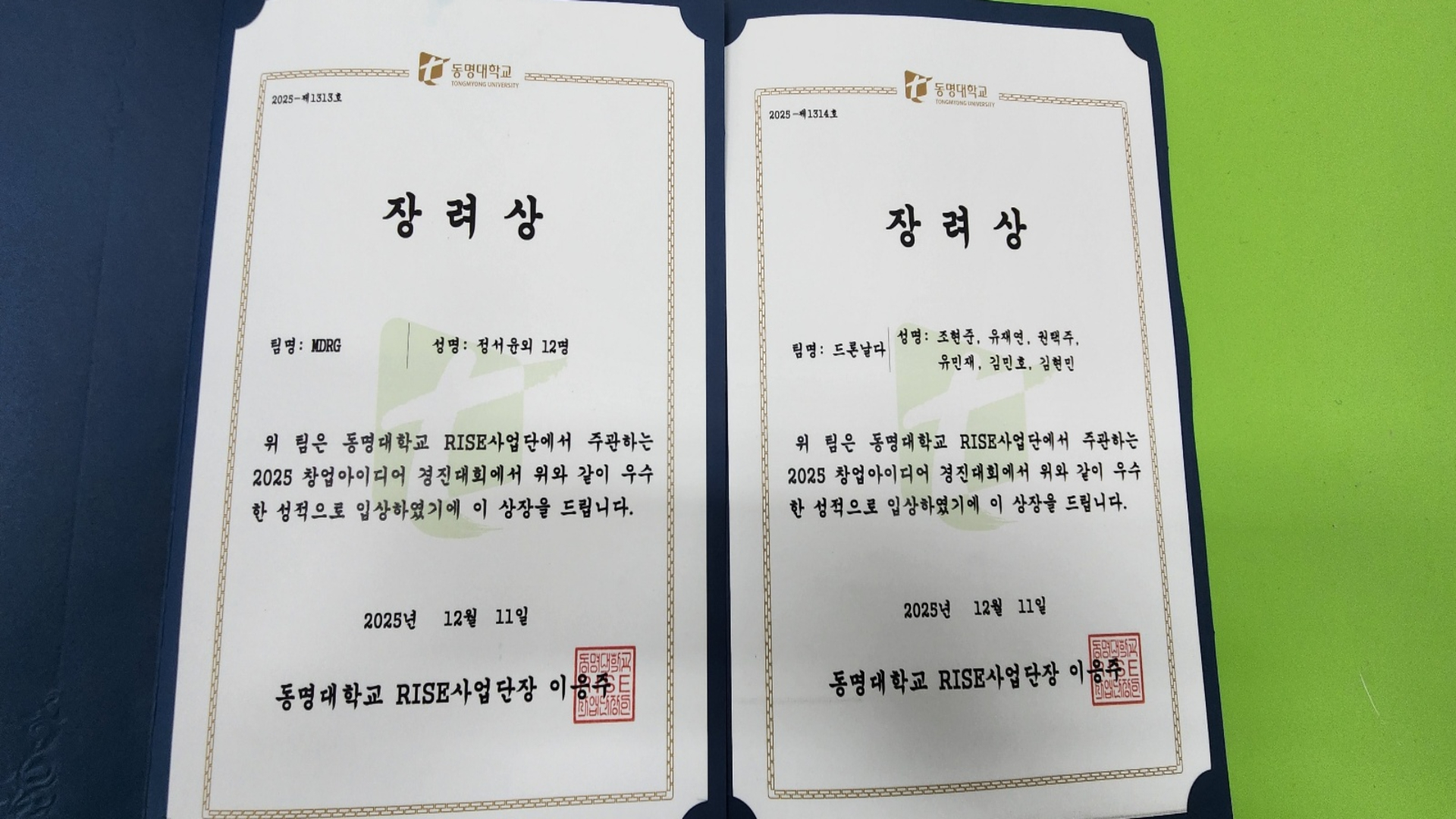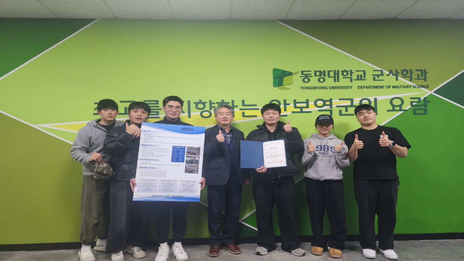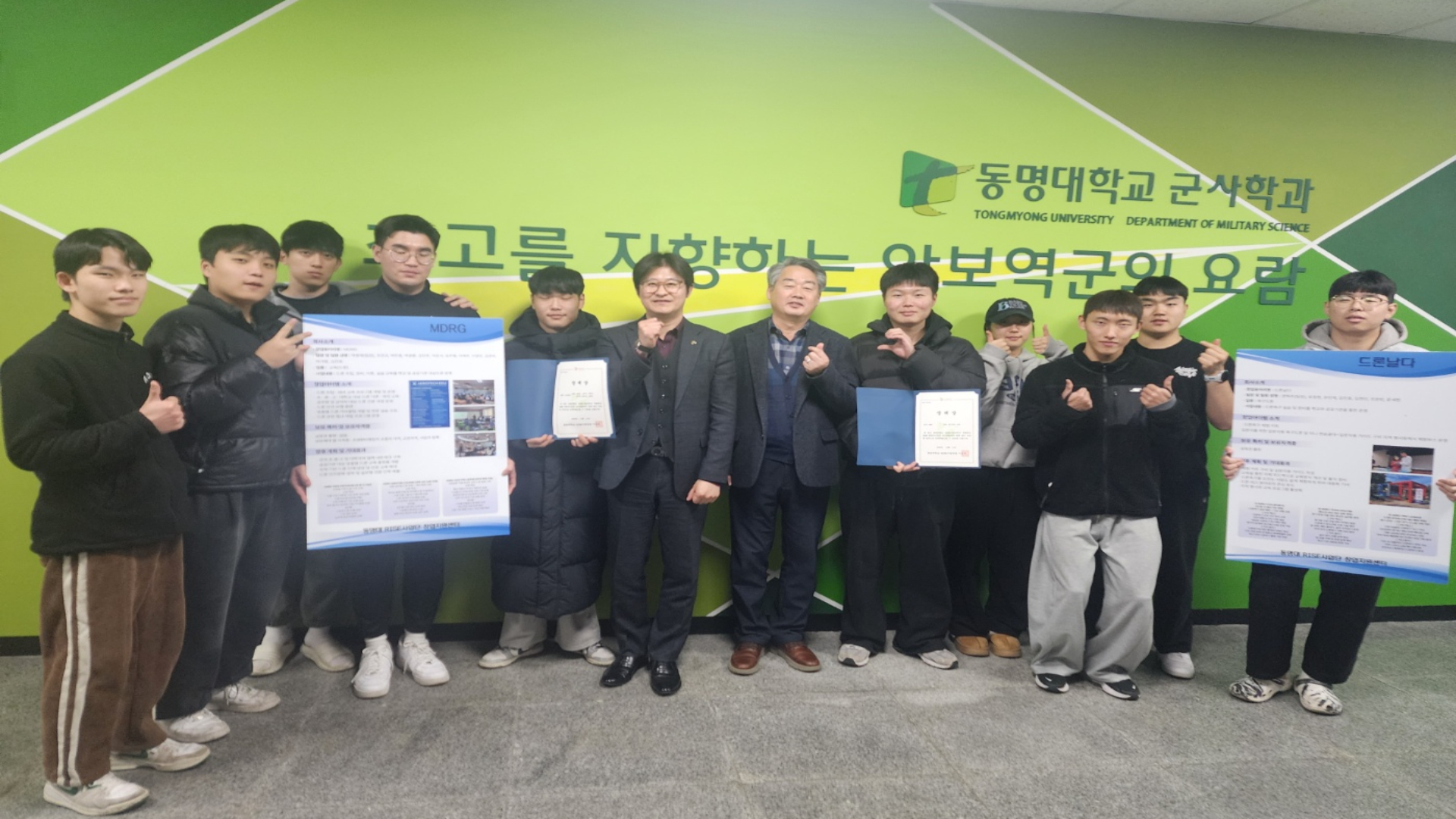 1. "MDRG" 팀 - 4학년 정서윤 팀장 등 12명(동아라 지도 : 나승학 학장님)