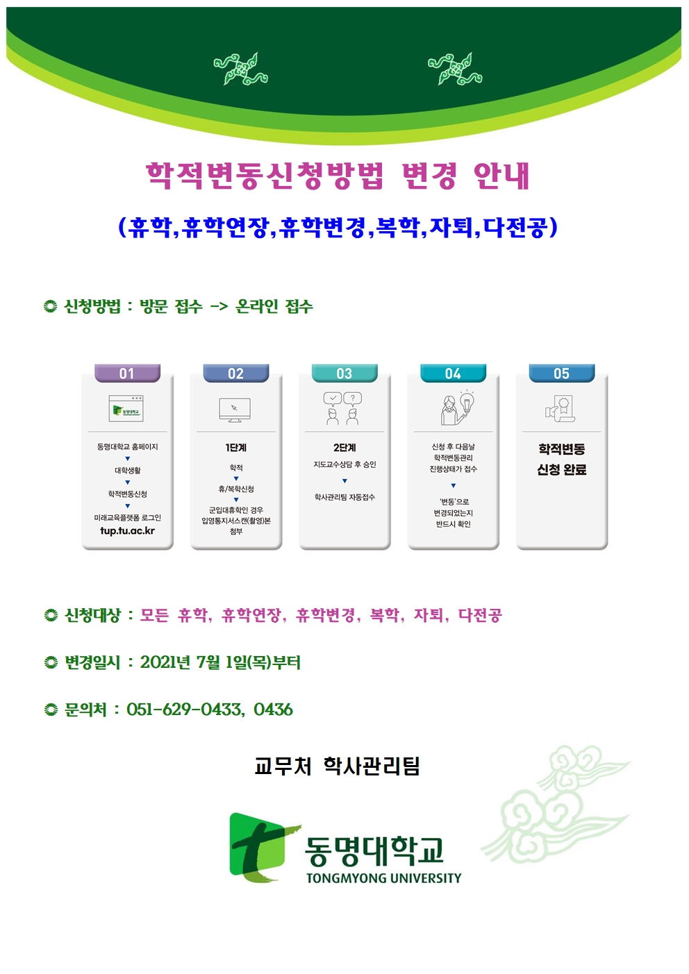 학적변동신청방법 변경 안내 (휴학, 복학, 자퇴, 다전공)