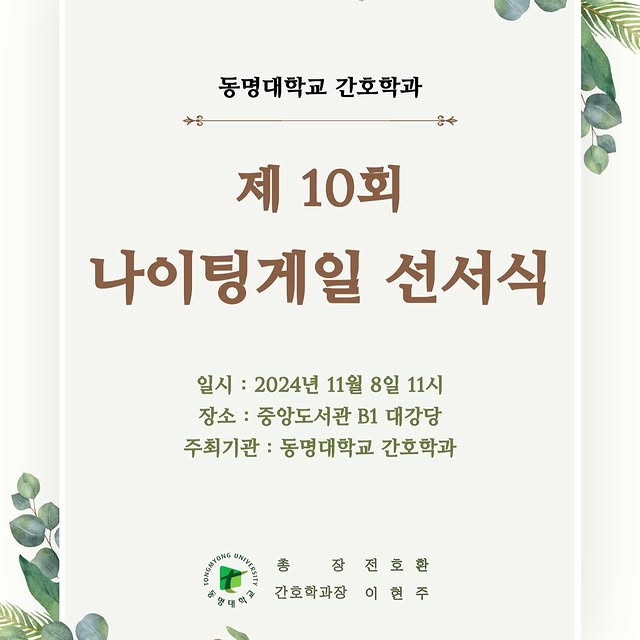 🕯️동명대학교 간호학과 제10회 나이팅게일 선서식 안내🕯️