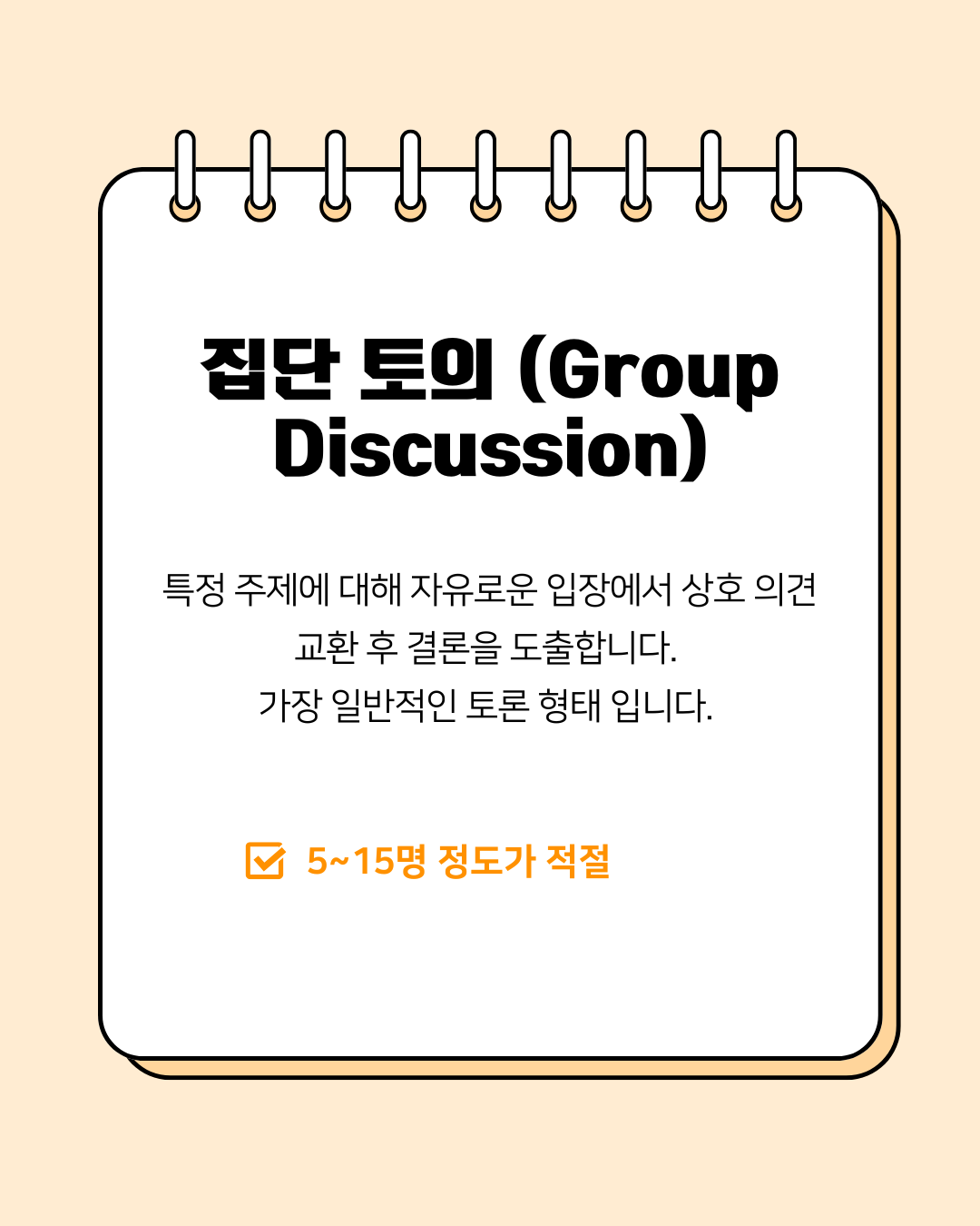 적정 인원: 5~15명 정도가 가장 효율적입니다.