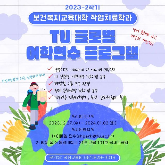 보건단대 TU 글로벌 어학연수 프로그램을 진행합니다.