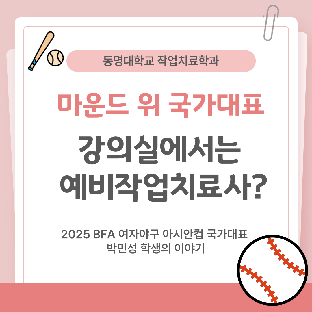 작업치료학과 박민성 학생, ‘2025 BFA 여자야구 아시안컵’ 국가대표로 출격!