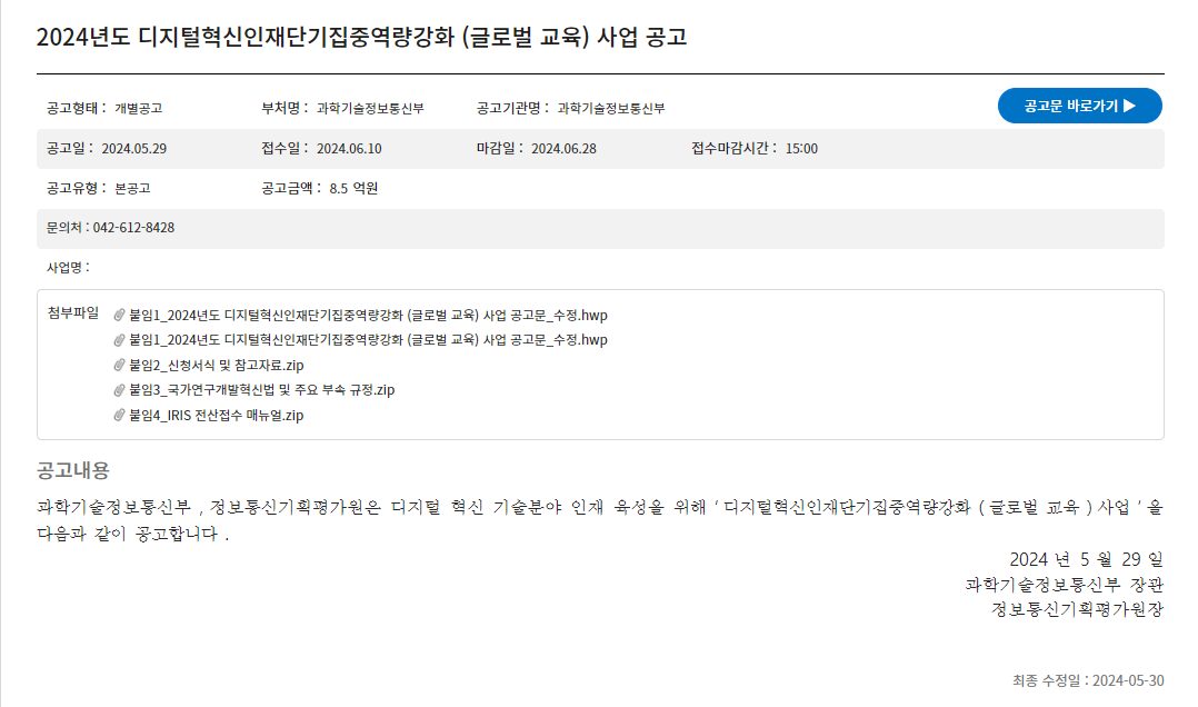 2024년도 디지털혁신인재단기집중역량강화 (글로벌 교육) 사업 공고