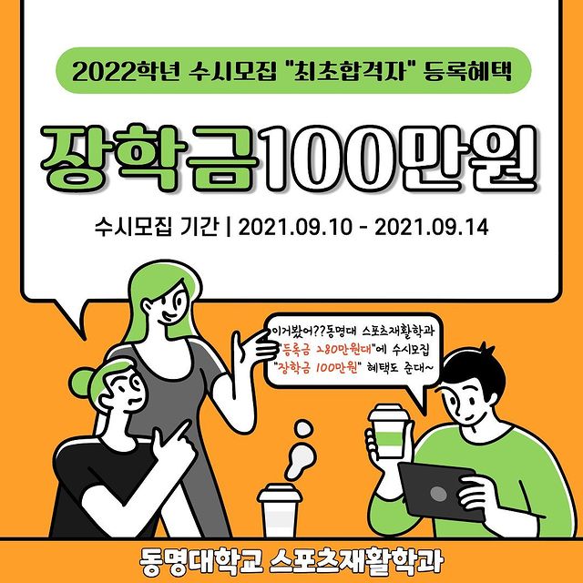 수시 모집 최초 합격은 장학금 " 100 만원 " 을 지원 하는 학과가 있다면 ,, 그것은 동명대학교 스포츠 재활 학과 🥴