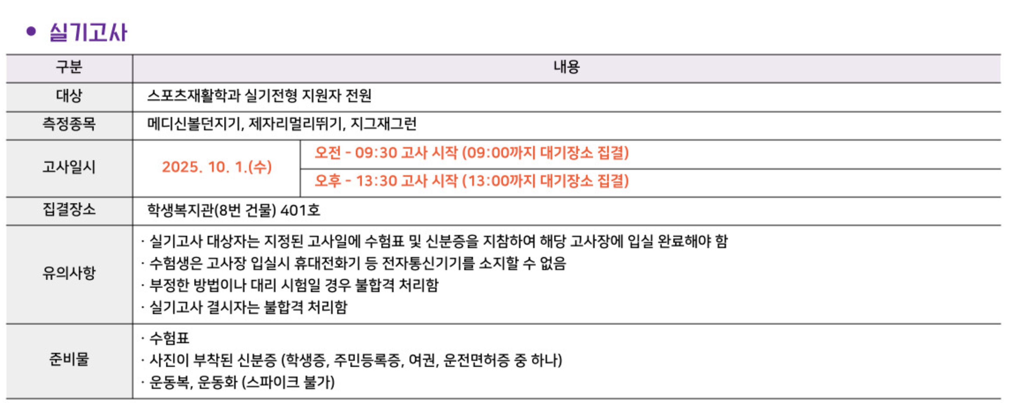 [공지] 2026학년도 스포츠재활학과 실기전형 안내
