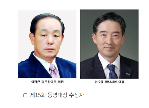 제15회 동명대상 “이명근 성우하이텍 회장 & 이수태 파나시아 대표”