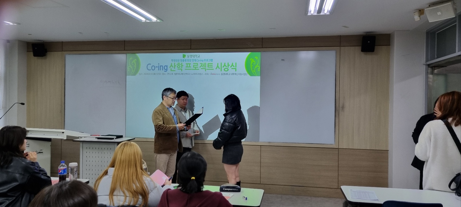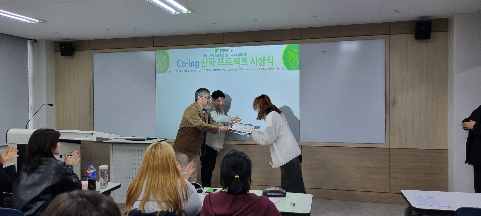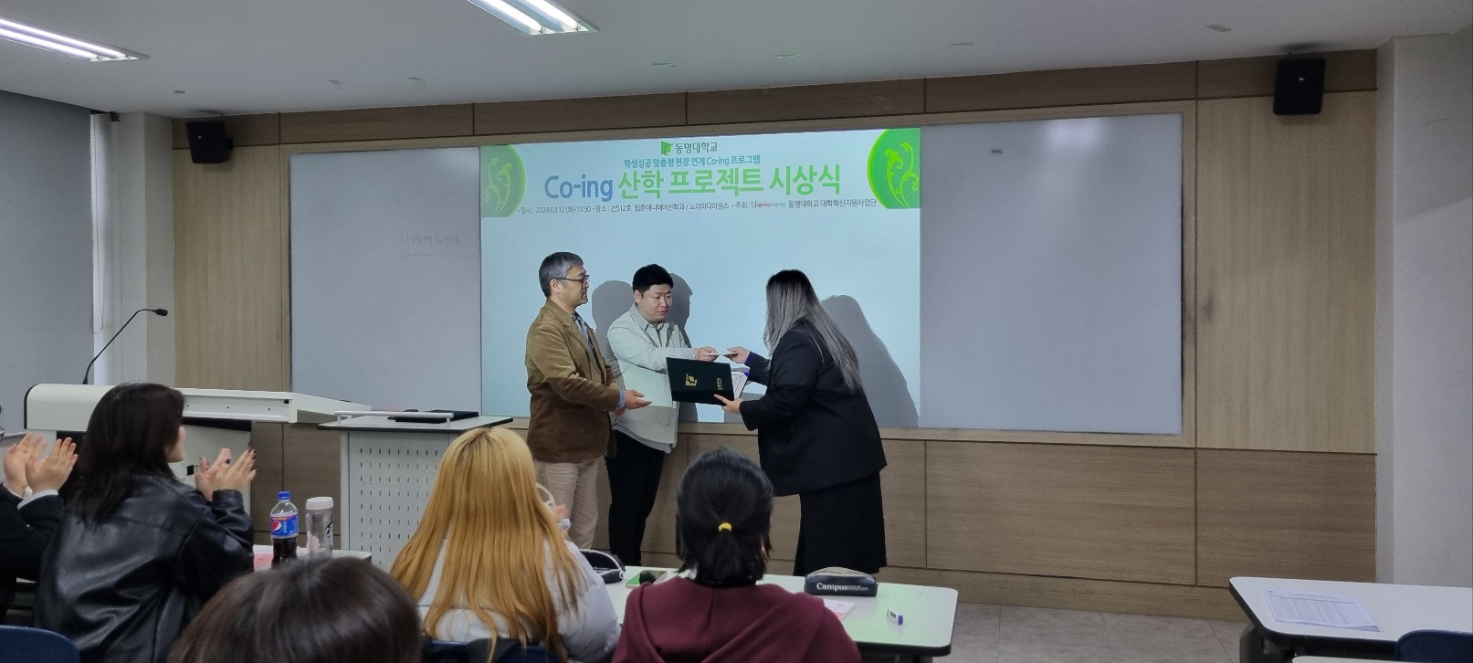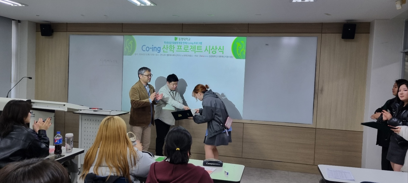 23년 11월부터 24년 1월까지 3개월에 걸친 Co-ing 산학프로젝트!!! 드디어 마무리 후 우수학우분들께 장학금과 상장수여식이 있었어요.