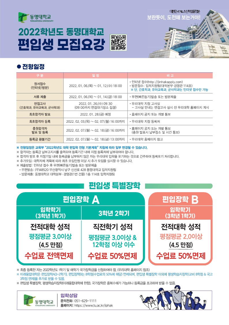 2022학년도 편입생 모집 안내