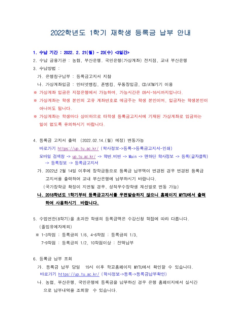 3. 2차추가등록 : 2022.03.17(목) ~ 18(금) 부산은행(가상), 교내부산은행