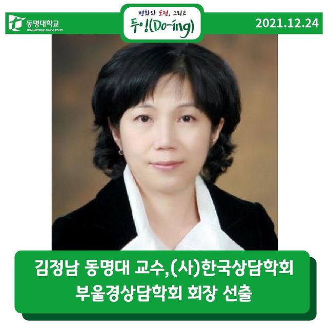 • 김정남 동명대 교수, (사)한국상담학회 부울경상담학회 회장 선출 인스타그램 2021-12-24