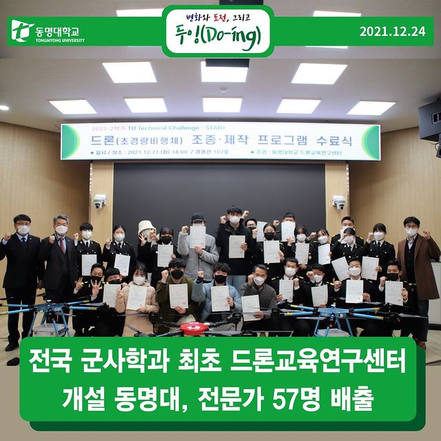 • 전국 군사학과 최초 드론교육연구센터 개설 동명대, 전문가 57명 배출 인스타그램 2021-12-24